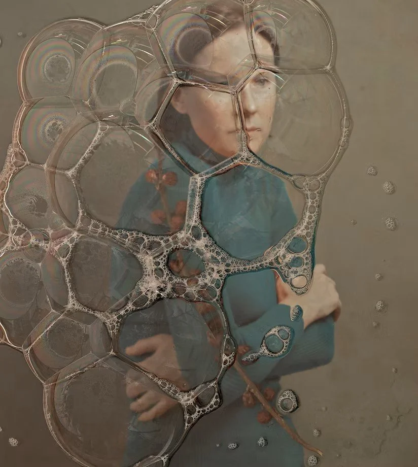El desenfoque también añade una sensación de fugacidad, fragilidad y distanciamiento, subrayando que estos intentos solo crean una ilusión temporal sin anular la realidad. Al crear estos retratos, hablo conmigo misma sobre lo que significa envejecer, cambiar y dejar ir a la persona que fui.