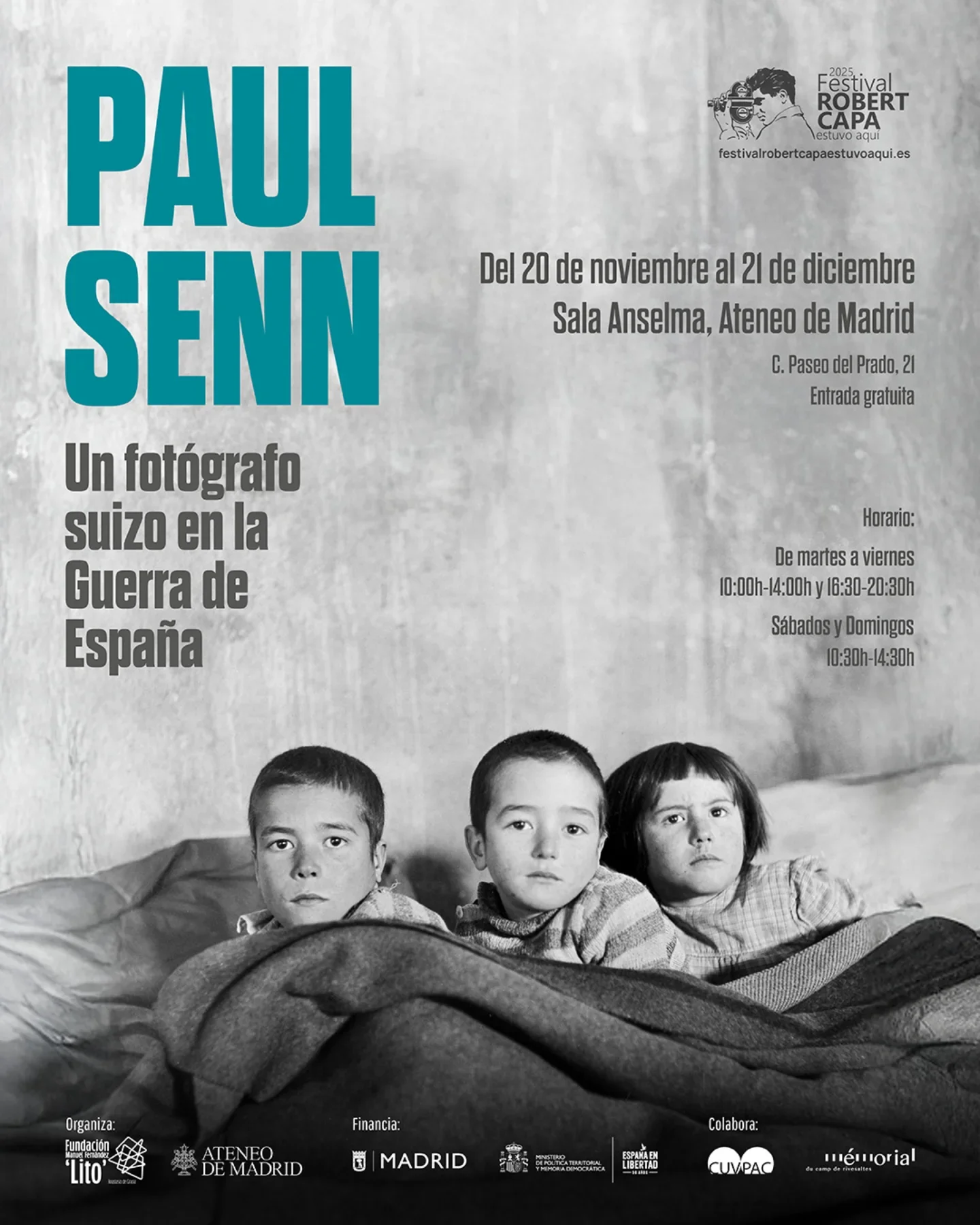 La sala Anselma del Ateneo de Madrid inaugurará el jueves 20 de noviembre, a las 11.30 h, la exposición Paul Senn. Un fotógrafo suizo en la guerra de España, dentro del Festival Robert Capa estuvo aquí que organiza la Fundación Manuel Fernández “Lito”. La muestra reúne un centenar de imágenes del reportero —apodado «el Capa suizo»— y presenta por primera vez en España su trabajo sobre la Guerra Civil y el exilio republicano, en un proyecto comisariado por Michel Lefebvre y Markus Schürpf.