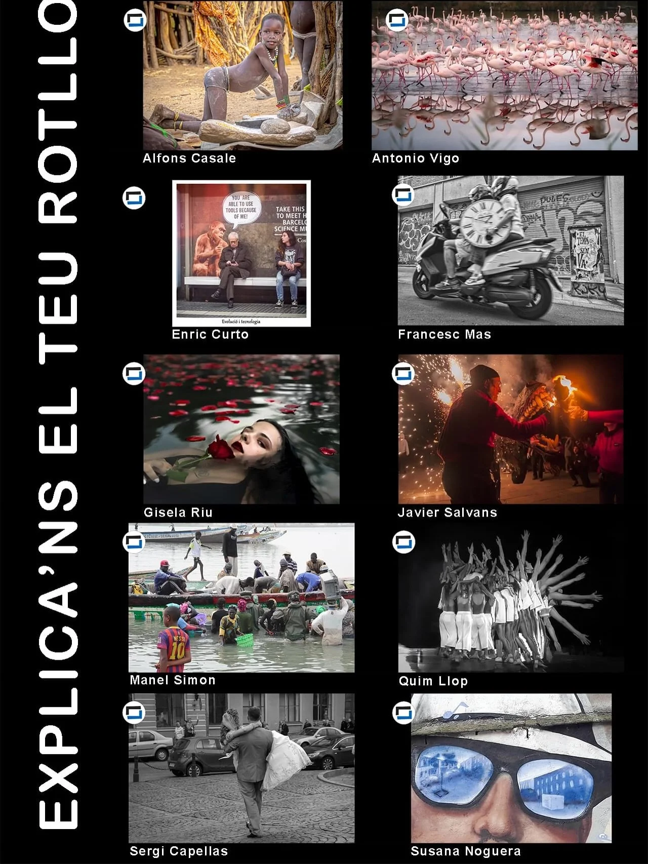 Se proyectarán 53 trabajos fotográficos de la última edición de este proyecto nacido en Sant Cugat, que apuesta por acercar la fotografía a todo el mundo. Cada autor presenta una selección de imágenes acompañadas de una voz en off que nos guía por su universo visual. Antes, podremos disfrutar de un mini rollo sorpresa de los integrantes del Grupo Fotográfico El Gra.