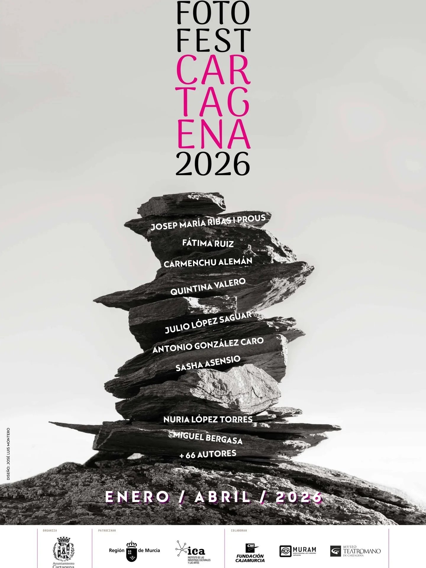 ¿Qué? Cartagena recupera su vínculo histórico con la fotografía con esta bienal bajo la dirección artística del fotógrafo Juan Manuel Díaz Burgos. La primera edición reúne trece exposiciones de autores como Carmenchu Alemán, Antonio González Caro, Julio López Saguar, Quintina Valero, Sasha Asensio, Fátima Ruiz, Nuria López Torres y Miguel Bergasa Larumbe. El festival rinde homenaje al maestro Josep María Ribas Prous y lleva la fotografía a la calle con Caleidoscopio, una muestra urbana con más de 200 imágenes de 65 autores nacidos o residentes en la Región.