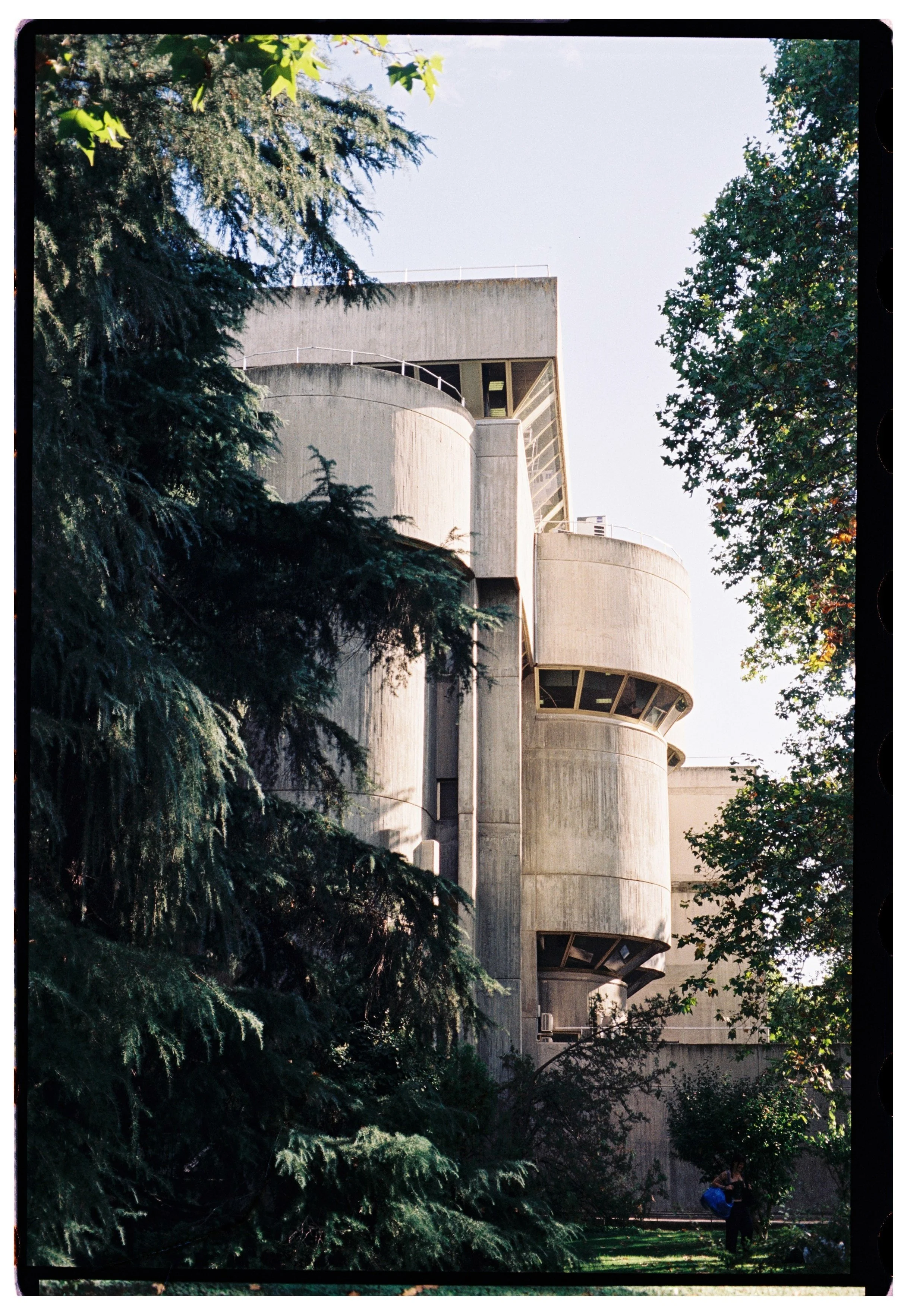 Las fotos realizadas con Kodak Vision3 250D a ISO 64 revelan algo esencial: que esta facultad no solo se presta a ser filmada, sino que pide ser revisitada. El brutalismo, tan frecuentemente malentendido, encuentra en el negativo analógico un aliado inesperado. Y la memoria visual de Tesis se reescribe en cada fotograma.