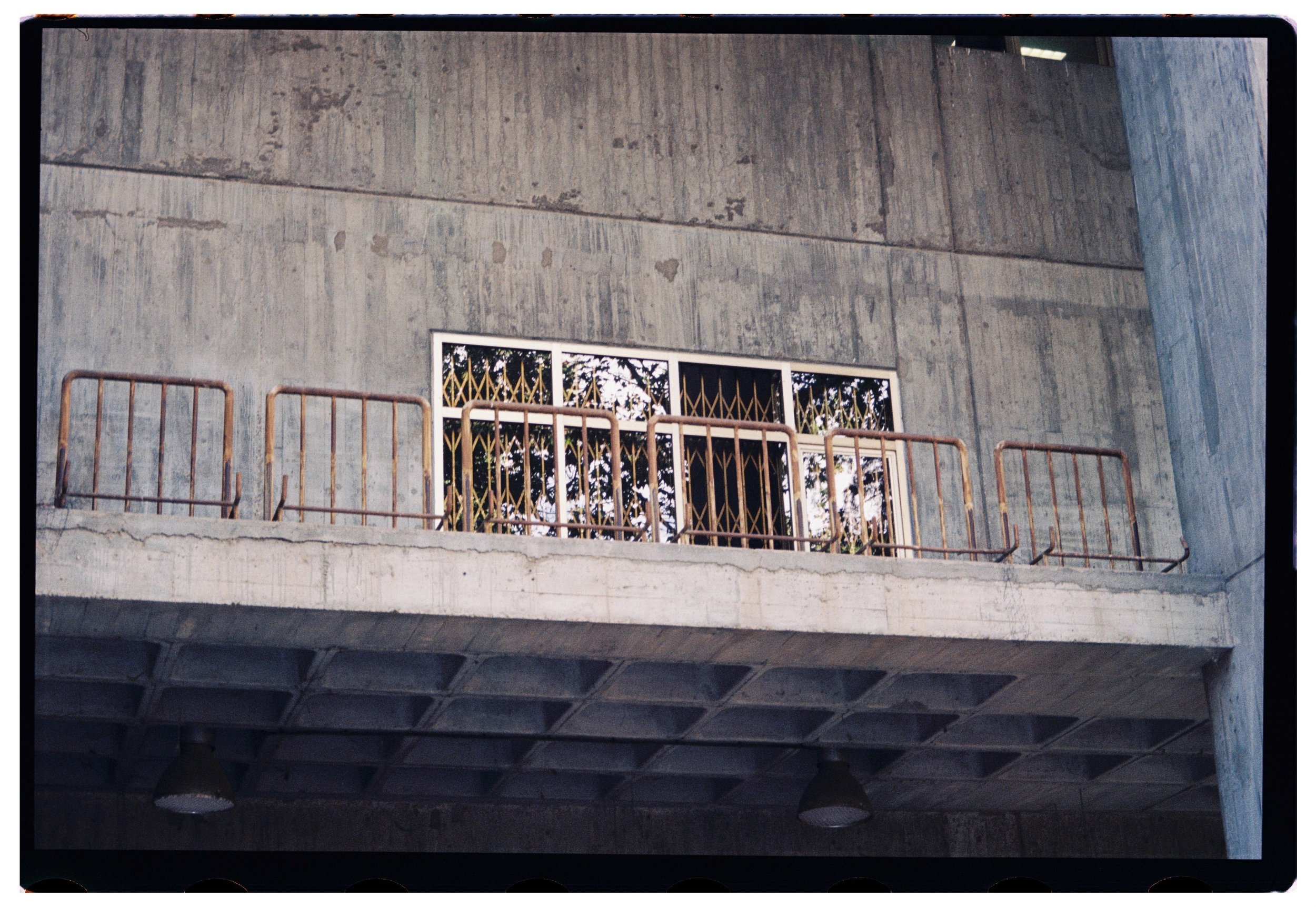Usé una Pentax Zoom 70X, una cámara modesta pero versátil que me regaló mi novio y que pertenecía a su padre, cuya óptica produce una imagen honesta, sin florituras. Su zoom no intenta corregir la crudeza del edificio: la acepta. Y en esa aceptación surge el equilibrio entre la fotografía documental y la mirada personal.