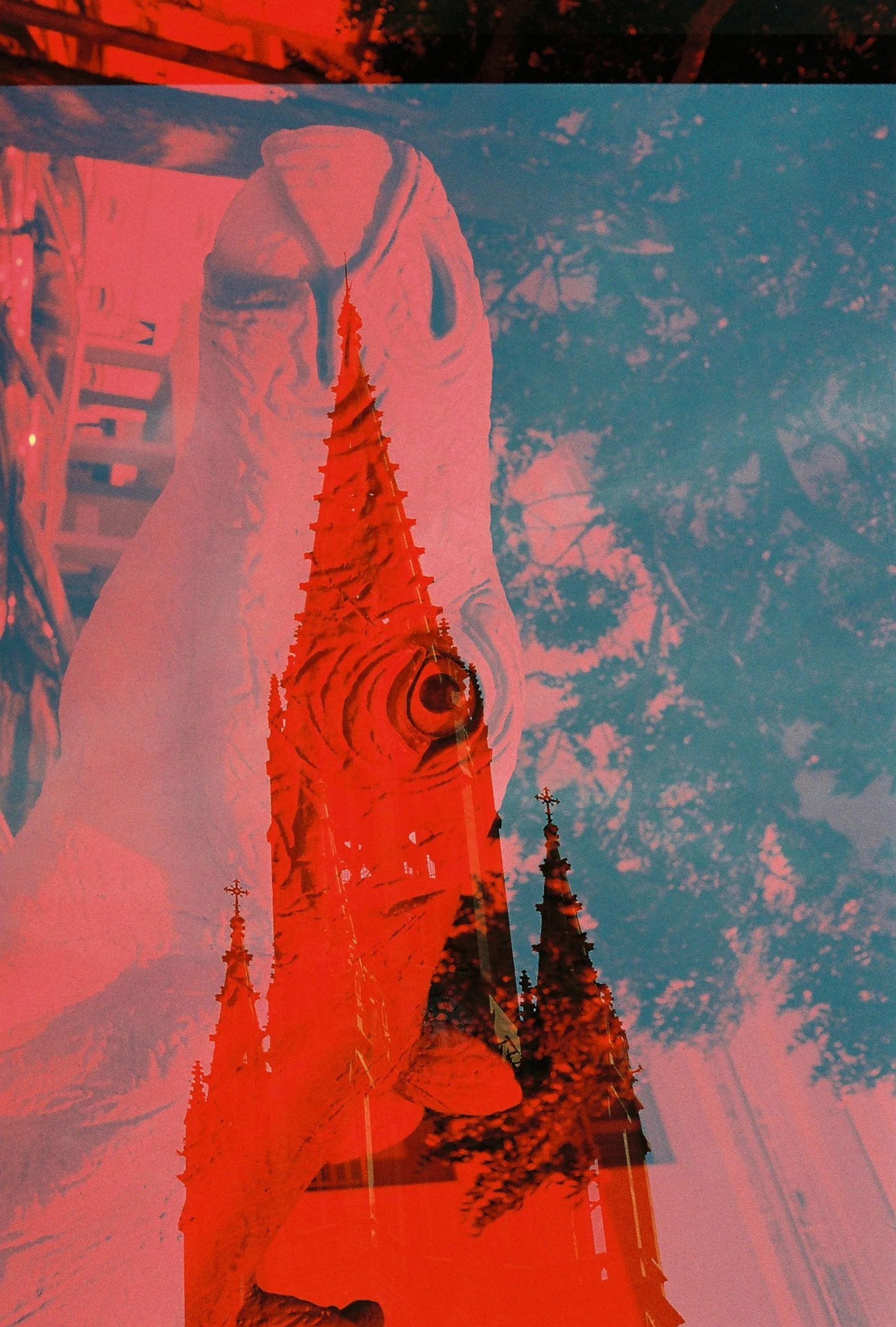 Mi primer contacto con el film swap fue en un taller de fotografía que hice en una tienda de Madrid llamada Cuarto Color. Esta técnica de fotografía analógica consiste en que dos personas disparen el mismo carrete y creen dobles exposiciones en una misma película. Puede sonar un poco complejo, pero en realidad es muy sencillo: una persona dispara primero un carrete en su cámara, lo rebobina y otra persona vuelve a dispararlo; el resultado final combina imágenes de las dos exposiciones.