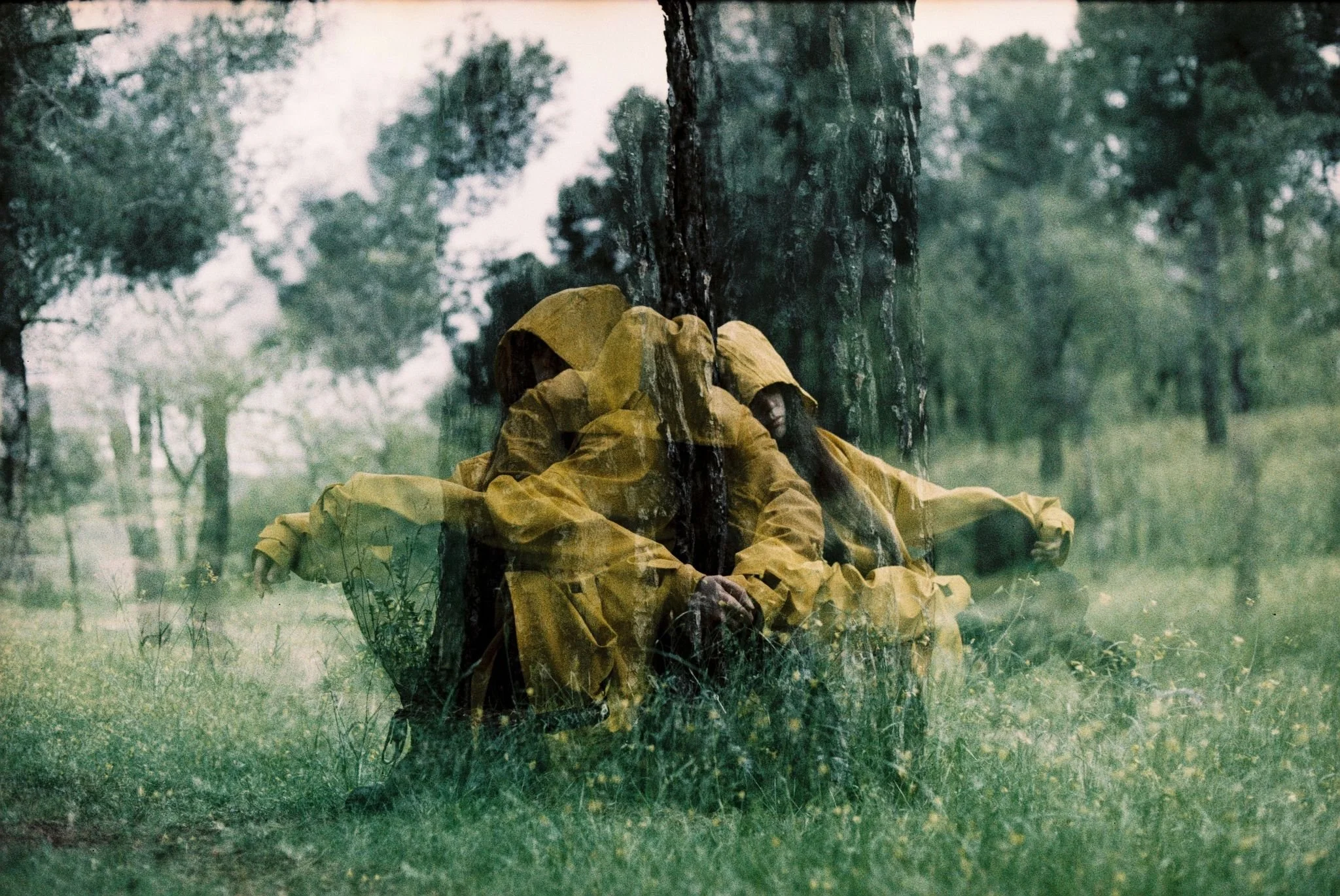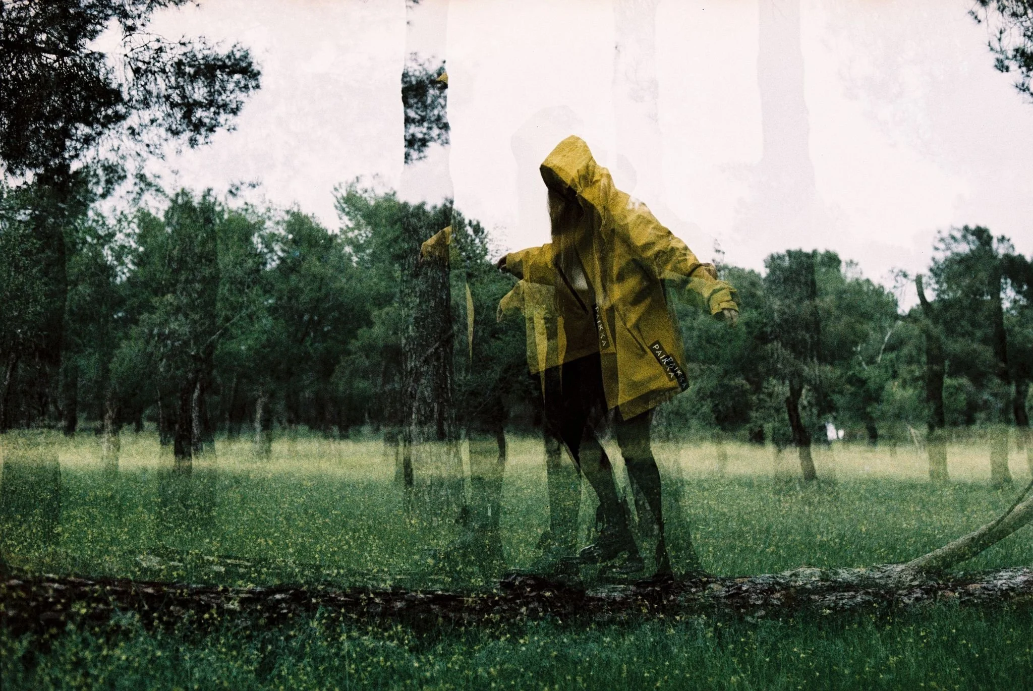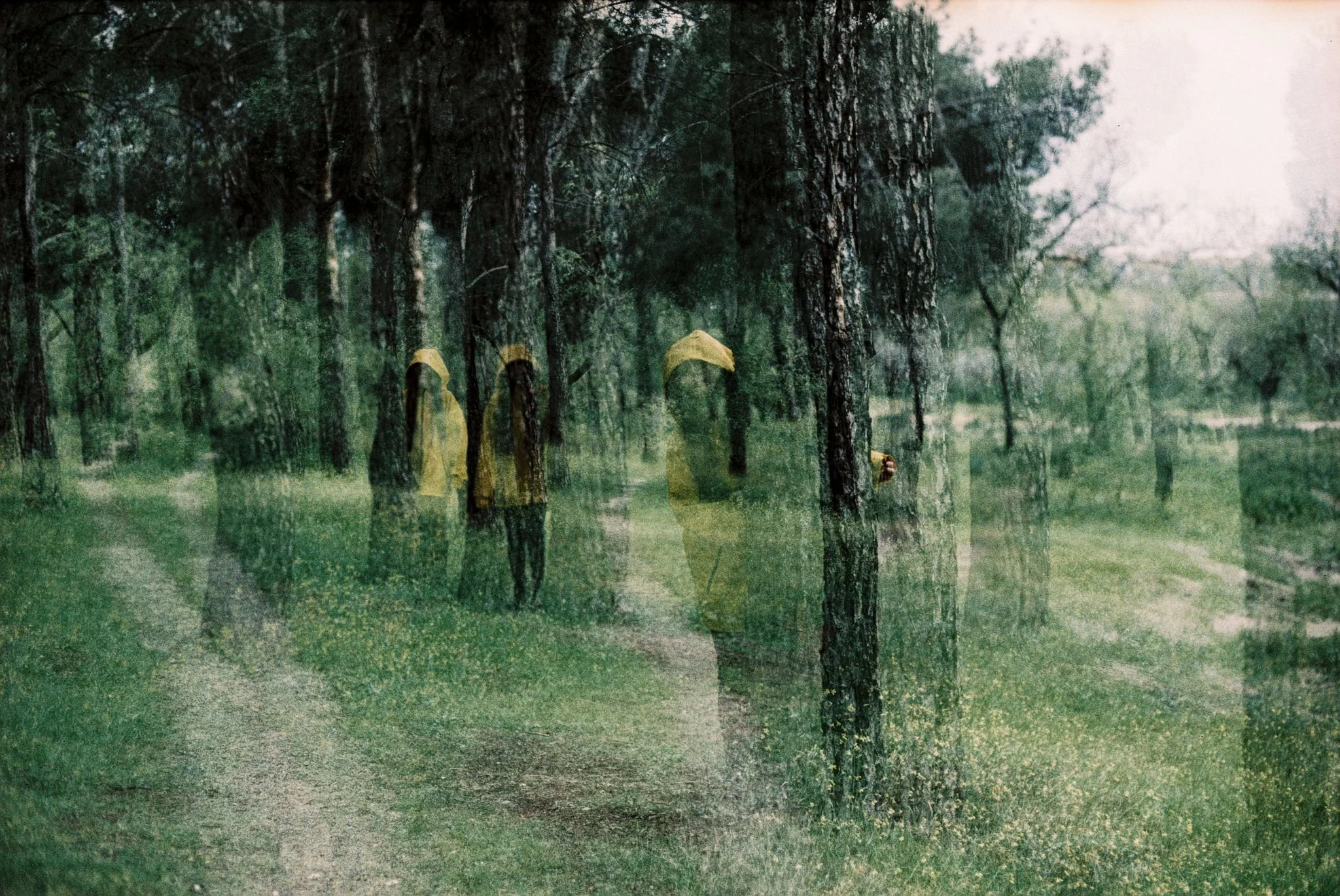 En este proyecto visual artístico abarco el umbral entre el cuerpo y el paisaje, entre la presencia y la disolución. A través de la técnica de la múltiple exposición analógica (hice dobles y triples) y el uso simbólico de una figura vestida con un impermeable amarillo —reminiscente de una infancia perdida o de una figura espectral—, la serie sugiere una fusión melancólica con la naturaleza, como si el cuerpo se dejara absorber por el entorno.