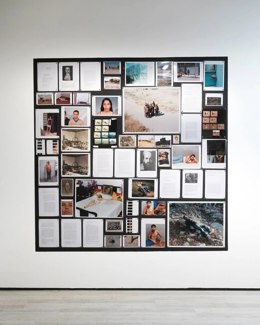 La colaboración para su proyecto Bravo surgió de manera orgánica. Todo empezó cuando él hojeó mi libreta de apuntes de laboratorio —un cuaderno caótico pero íntimo, lleno de anotaciones sobre tiempos, filtros y pruebas— y propuso transformarlo en una pieza. Así nació la idea de construir un panel informativo que combinara referencias visuales con marcas técnicas de impresión, como una suerte de cartografía de su archivo.