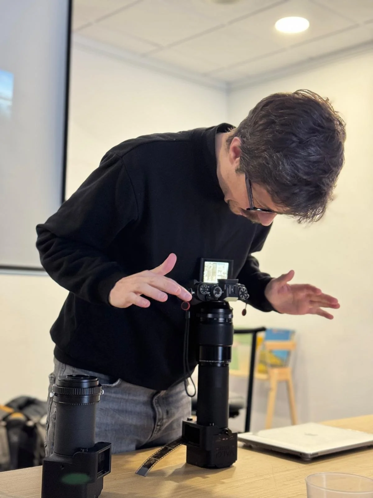 Revisando cámaras y preparándonos mentalmente para salir a fotografiar de una forma completamente nueva.
